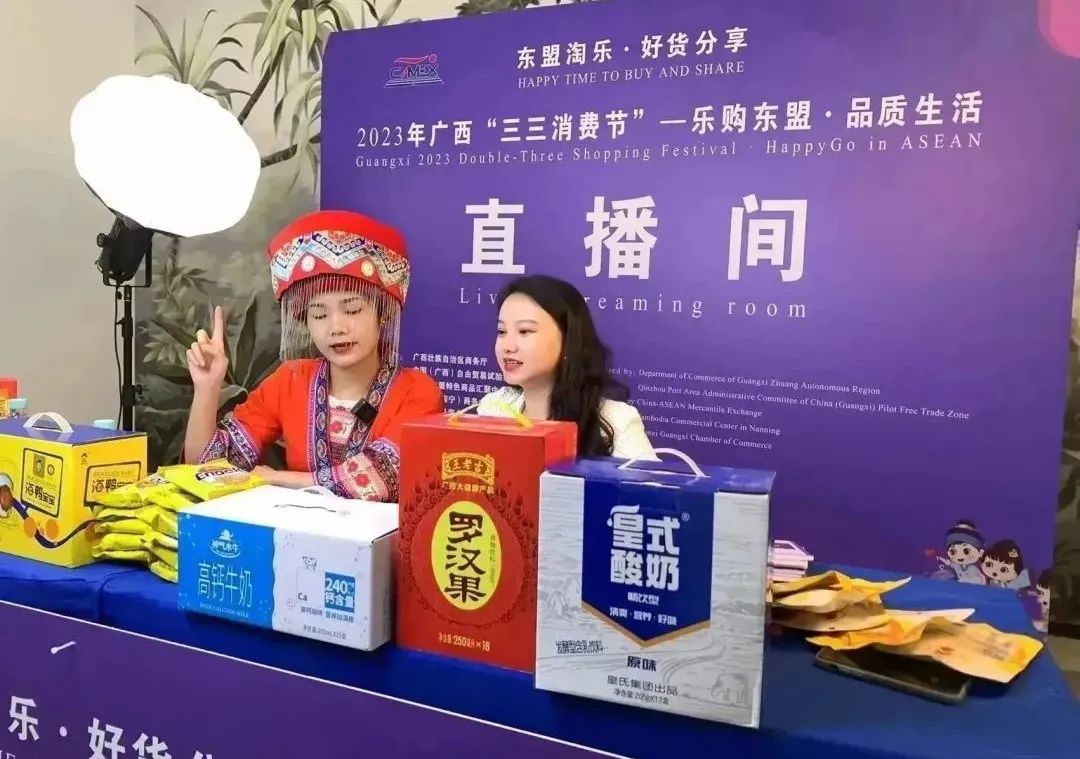 本次活動(dòng)還通過開辟線上分會(huì)場、開展“直播帶貨”等新零售模式,線上線下聯(lián)動(dòng),促進(jìn)東盟國家商品進(jìn)口和廣西產(chǎn)品“出海”。主播在天貓和抖音兩大平臺,云上聯(lián)動(dòng),圍繞廣西以及東盟特色商品開展專場直播帶貨活動(dòng),在展銷區(qū)和匯聚中心進(jìn)行“云逛展”,與東盟特色商品經(jīng)銷商、供應(yīng)商互動(dòng)交流,向粉絲觀眾分享品嘗體驗(yàn)與逛展心得,借助新媒體平臺,為東盟特色商品引流,促進(jìn)線上銷售。