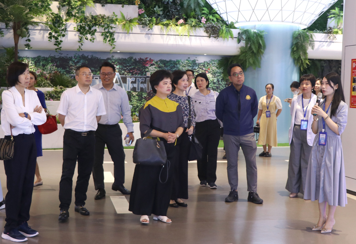 2023年6月30日,泰國商業(yè)部巡視組組長(副司級)素南塔.剛婉古吉女士一行到中新南寧國際物流園(以下簡稱“中新物流園”)、中國—東盟特色商品匯聚中心(以下簡稱“匯聚中心”)考察,就進(jìn)一步提升中泰兩國在經(jīng)貿(mào)領(lǐng)域的合作與交流展開探討。廣西新中產(chǎn)業(yè)投資有限公司副總經(jīng)理商紅熱情接待了巡視組一行。