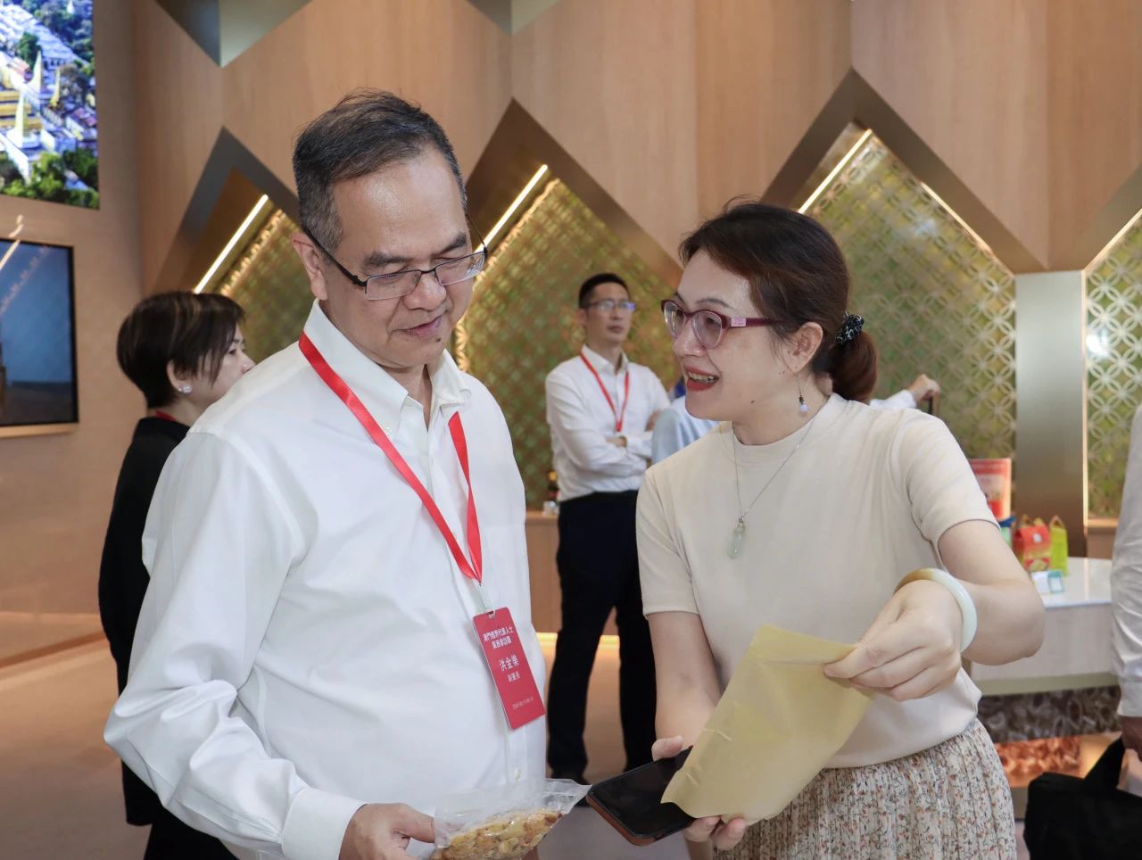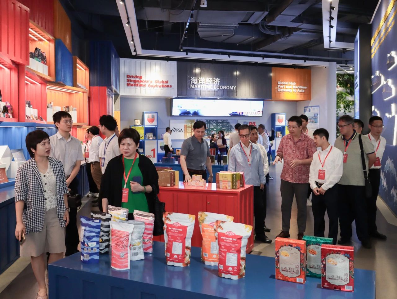 在匯聚中心,參訪團(tuán)從東盟國(guó)家主題館參觀到RCEP其他區(qū)域國(guó)家主題館,一路興致盎然,熱情咨詢(xún)項(xiàng)目的相關(guān)信息并不斷合影留念。他們紛紛表示,匯聚中心各館融合了各國(guó)當(dāng)?shù)靥厣ㄖ懊袼罪L(fēng)情元素,巧妙將各國(guó)特色產(chǎn)品進(jìn)行突出展示與銷(xiāo)售,這樣的方式十分特別,對(duì)商家與消費(fèi)者來(lái)說(shuō)是一種創(chuàng)新的體驗(yàn)。其中,來(lái)自澳門(mén)各東盟國(guó)家商會(huì)的會(huì)長(zhǎng)們,對(duì)各自國(guó)家的主題展館尤其感興趣,當(dāng)即就商品入駐流程及具體事宜與匯聚中心團(tuán)隊(duì)進(jìn)行詳細(xì)對(duì)接,現(xiàn)場(chǎng)氣氛熱烈!