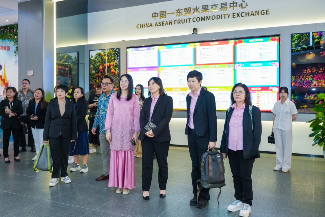 隨后,代表團(tuán)走進(jìn)水果交易中心展廳,詳細(xì)了解廣西本地水果產(chǎn)業(yè)特點(diǎn)及中國與東盟水果貿(mào)易的發(fā)展現(xiàn)狀與成果。代表團(tuán)提到,馬來西亞作為東南亞重要的水果進(jìn)出口國,果品資源豐富,尤其以聞名世界的貓山王榴蓮為代表,且馬來西亞大會(huì)堂總會(huì)聚集了大量果商,她們期待未來雙方能進(jìn)一步拓展溝通與合作渠道,并對(duì)與水果交易中心的合作充滿信心。