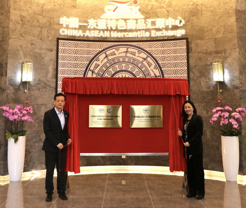 2022年11月15日,中國貿(mào)促會(huì)/中國國際商會(huì)廣西自由貿(mào)易試驗(yàn)區(qū)調(diào)解中心駐中新南寧國際物流園(以下簡稱“中新物流園”)聯(lián)絡(luò)處和廣西貿(mào)促會(huì)RCEP貿(mào)展服務(wù)中心在中國—東盟特色商品匯聚中心(以下簡稱“匯聚中心”)正式揭牌。廣西貿(mào)促會(huì)黨組書記、會(huì)長魏然,廣西新中產(chǎn)業(yè)投資有限公司董事長/中國—東盟特色商品匯聚中心董事長趙海燕等相關(guān)領(lǐng)導(dǎo)共同見證了本次揭牌活動(dòng)。