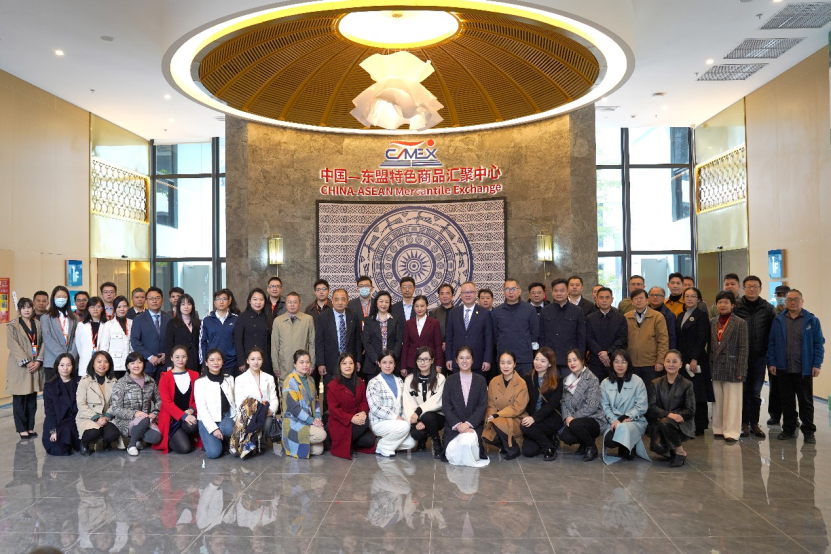 東博會秘書處對外聯(lián)絡(luò)部部長肖瀟,廣西新中產(chǎn)業(yè)投資有限公司副總經(jīng)理商紅,中國—東盟特色商品匯聚中心副總經(jīng)理盧春梅等相關(guān)領(lǐng)導(dǎo)出席掛牌儀式并陪同參觀匯聚中心主題展館。