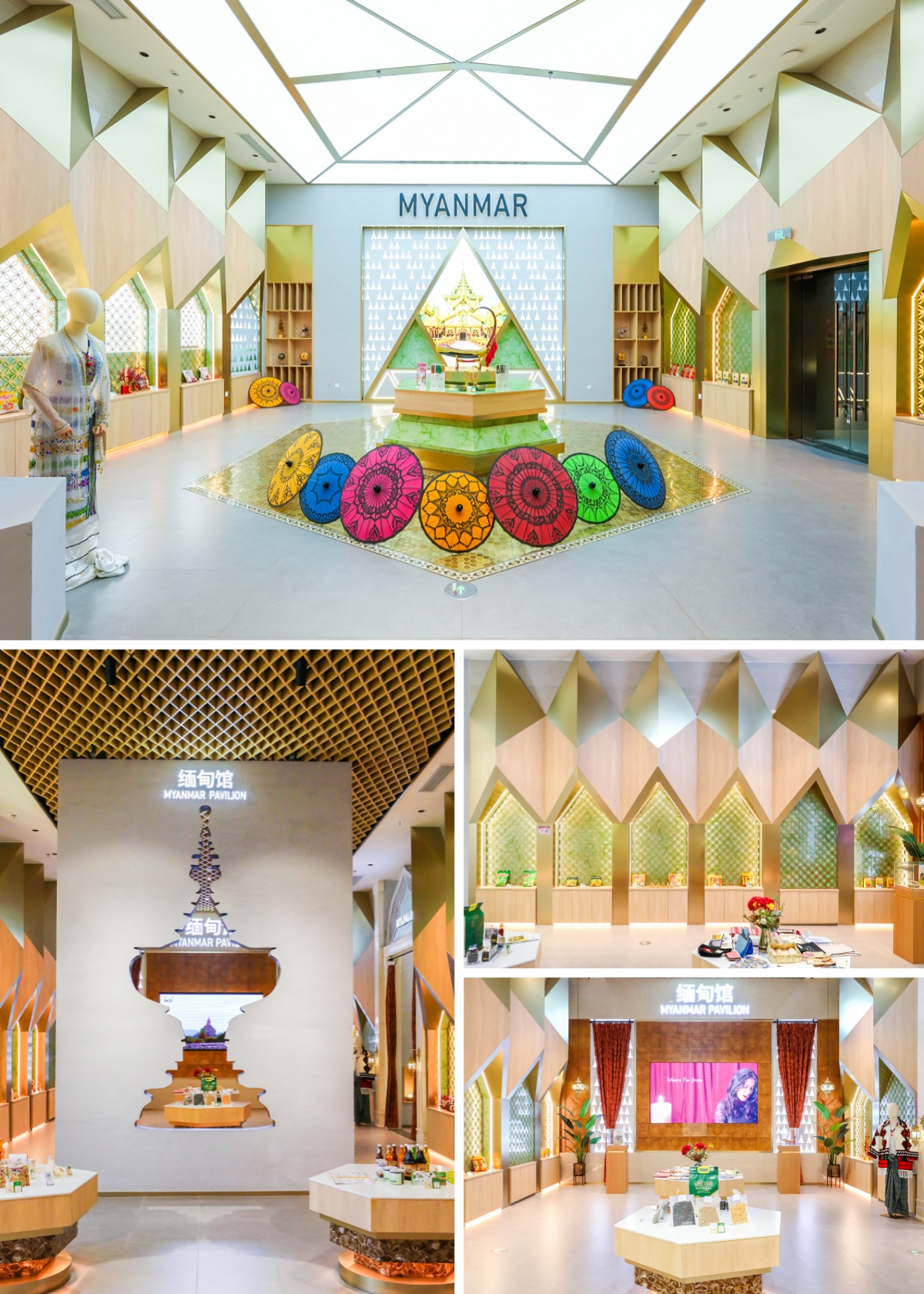 緬甸主題館內(nèi)展示了啤酒、茶葉、木偶奶茶、香米等多款特色商品,加之獨(dú)具當(dāng)?shù)靥厣恼故九_(tái),它們共同為我們打開了一扇感知緬甸民俗風(fēng)情的窗口。